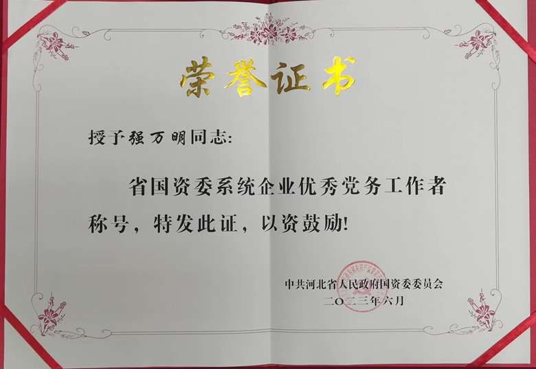 公司智能所支部委員會榮獲“先進(jìn)基層黨組織”榮譽(yù)稱號;下屬公司冀科公司黨支部榮獲“黨建工作與生產(chǎn)經(jīng)營深度融合先進(jìn)單位”榮譽(yù)稱號;公司黨委書記、董事長強(qiáng)萬明同志榮獲“優(yōu)秀黨務(wù)工作者”榮譽(yù)稱號;公司專職黨委副書記句德勝同志榮獲“優(yōu)秀共產(chǎn)黨員”榮譽(yù)稱號。