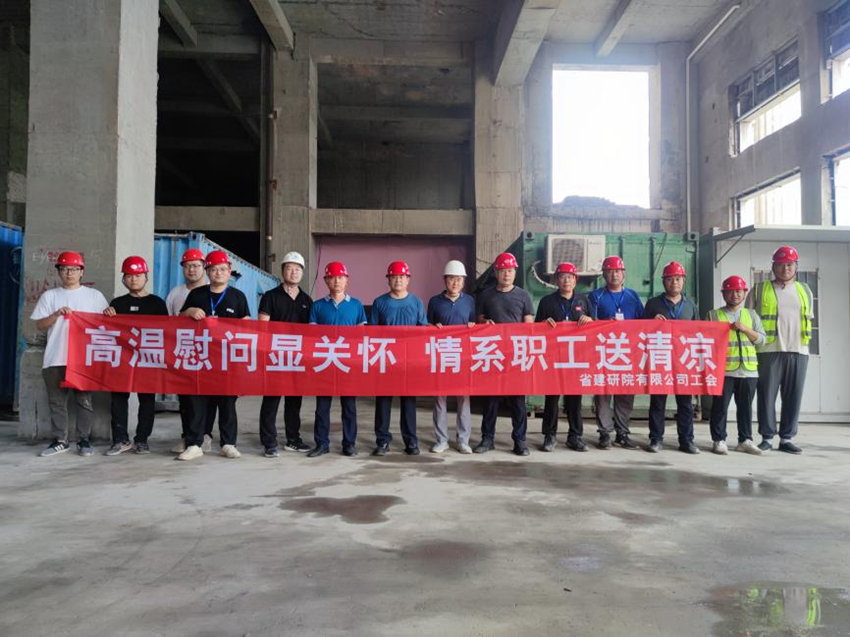 院公司總經(jīng)理葉金成同志及同行領(lǐng)導(dǎo)頂著烈日、冒著酷暑,來到工地一線實地調(diào)研指導(dǎo),并為全體參建員工送來關(guān)懷慰問。巖土所所長李金山同志將項目概況和現(xiàn)場進(jìn)展情況進(jìn)行了介紹。