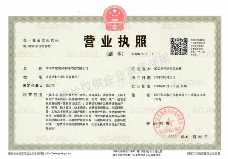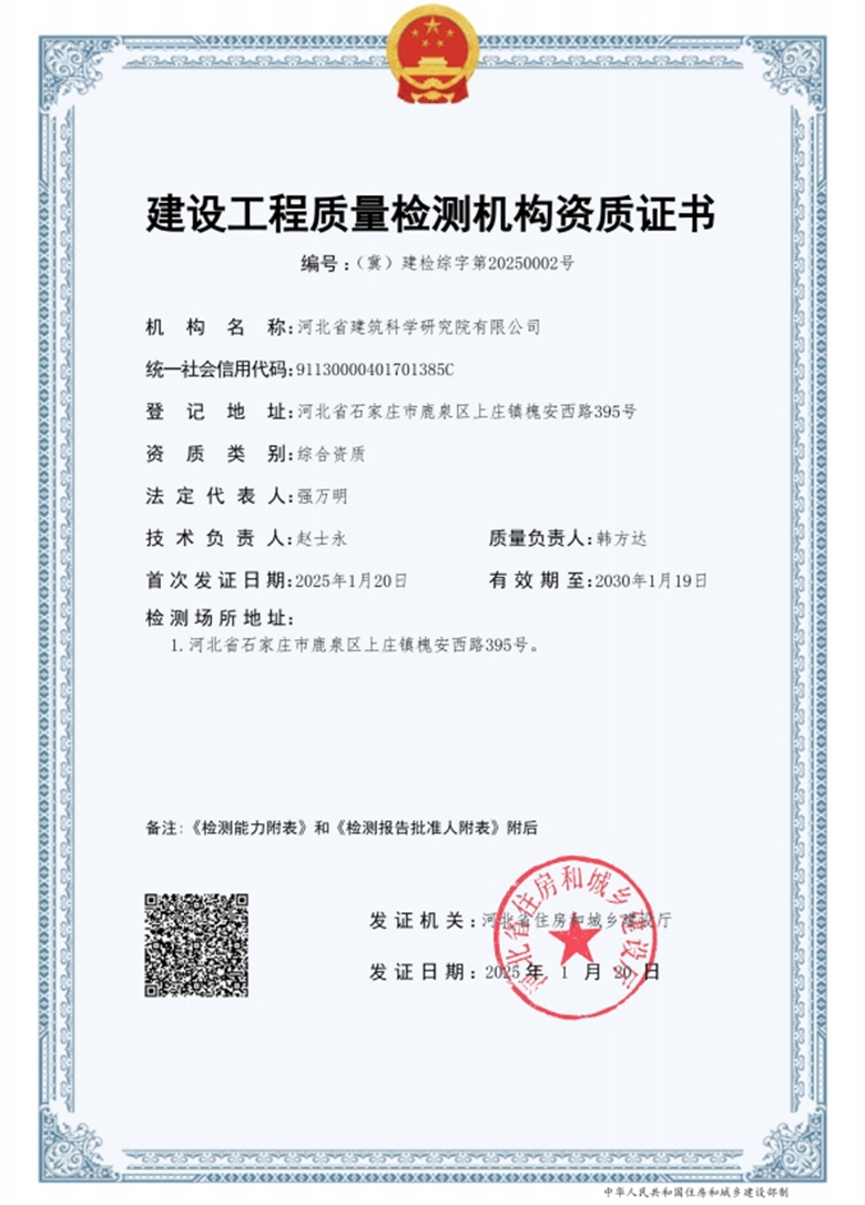 河北省建筑科學研究院有限公司資質(zhì)證書